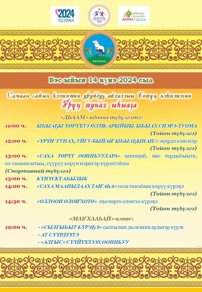 2024 сыл олунньу 15 күнүгэр Бөтүҥҥэ Амма улууһугар олоҥхо сылыгар аналлаах, СӨ култууратын уонна СӨ үөрэҕэриитин туйгуна, Үлэ бэтэрээнэ, Бөтүҥ нэһилиэгин, “Оллоон” СӨ көрдөрүүлээх оҕо фольклорнай ансаамбылын салайааччыта — Анисия Даниловна Софронова аатынан Өрөспүүбүлүкэтээҕи «Аммабытыгар олоҥхо дьиэрэйдин!» олоҥхону толорууга күөн күрэс түһүлгэтэ буолан ааста. Бу күн уопсайа Аммабыт улууһун Амма, Бөтүҥ, Абаҕа, Соморсун, Эмис, Болугур, Өнньүөс, Мээндиги, […]